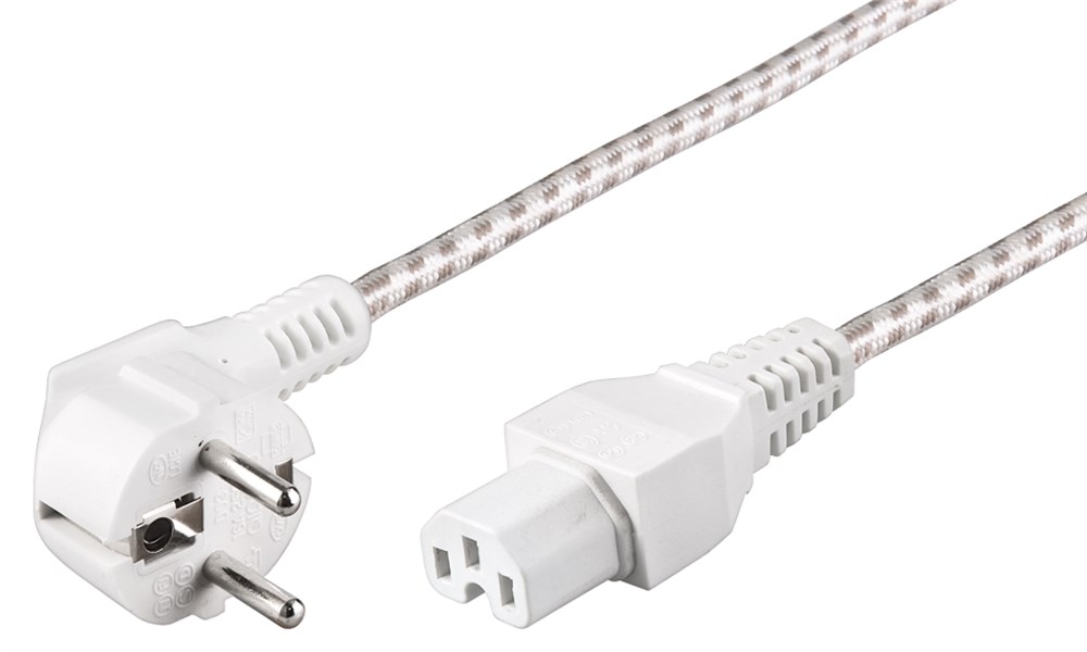 Verkkojohto maad 2m kangas valk- silver type F CEE 7/7 > C15 IP 9 93314 Availability: