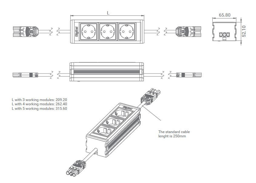 CPD² 80 4-paikkaa 2 x suko 2 x vapaa harmaa. Ø 80 mm asennusreikä pöydälle.